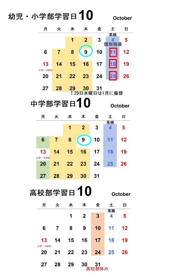 幼児・小学生・中学生は10月5回あるのでお休みにします
