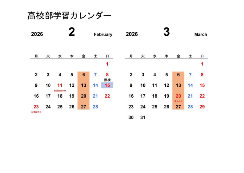 1.2月の金曜日の高校部の学習日は自主学習日を設けています