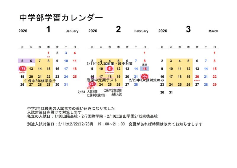 1.2月の金曜日の高校部の学習日は自主学習日を設けています
